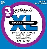 D'Addario ダダリオ エレキギター弦 ニッケル EXL120-3D 3パック SuperLight